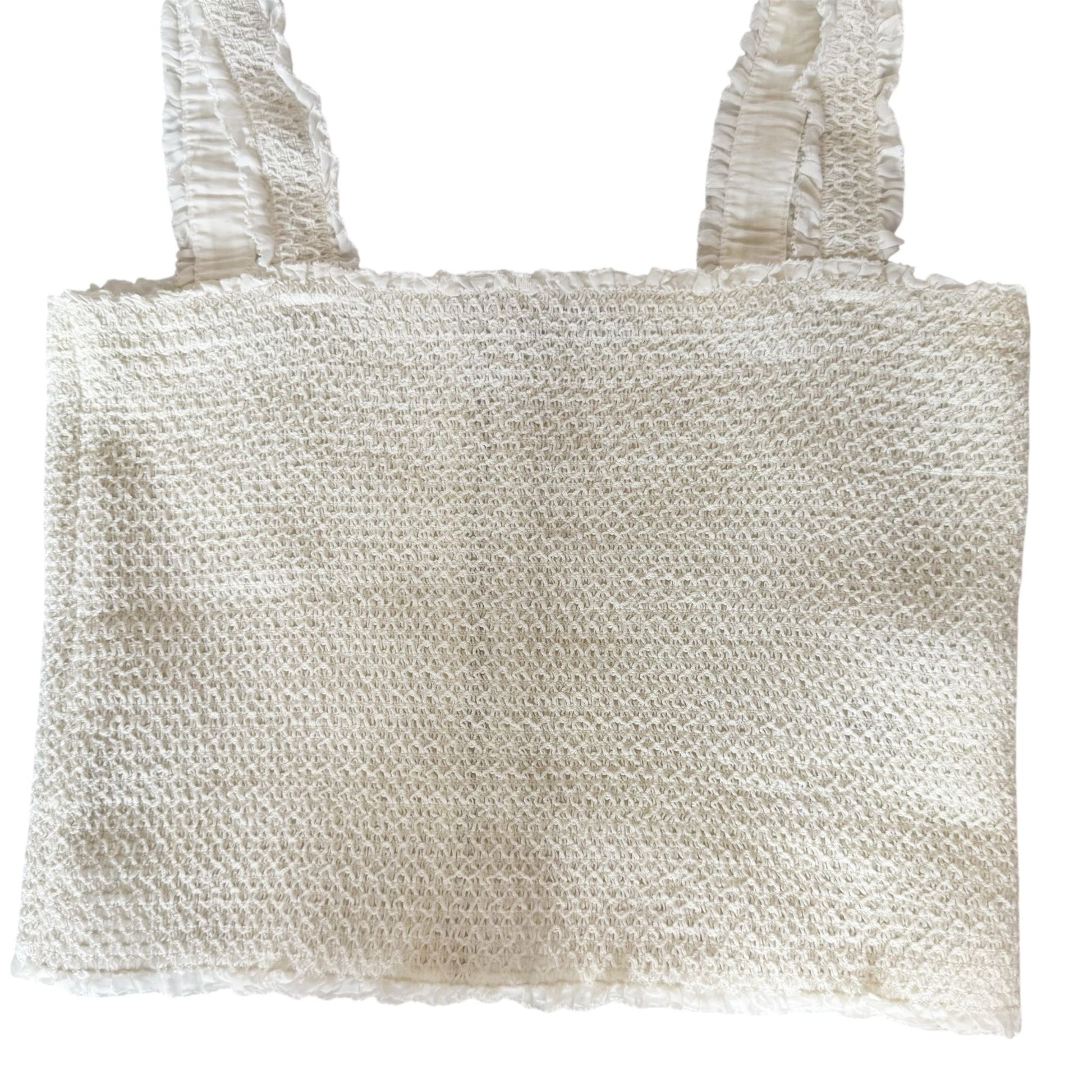 Nice crop top by Alice + Olivia. White crinkle stretch crop top. Lace straps. Zipper back. Stretch material. 70% cotton / 30% silk. Large (tag is an XL but runs small). Pre-owned and gently worn in really great condition!
