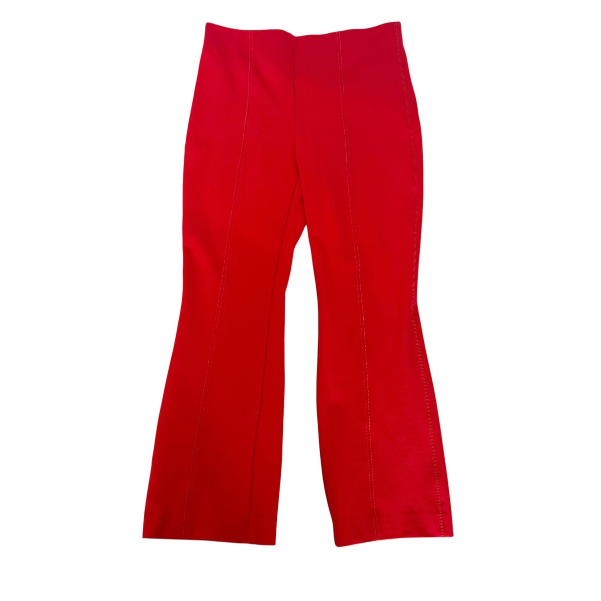 Great pair of pants by Anthropologie. The essential crop flare in red. Contrast stitch seam detail. Pull on. Elastic waist. Flare leg. Cropped. 69% viscose, 27% nylon, 4% elastane. Size small. Pre-owned and gently worn in really nice condition!