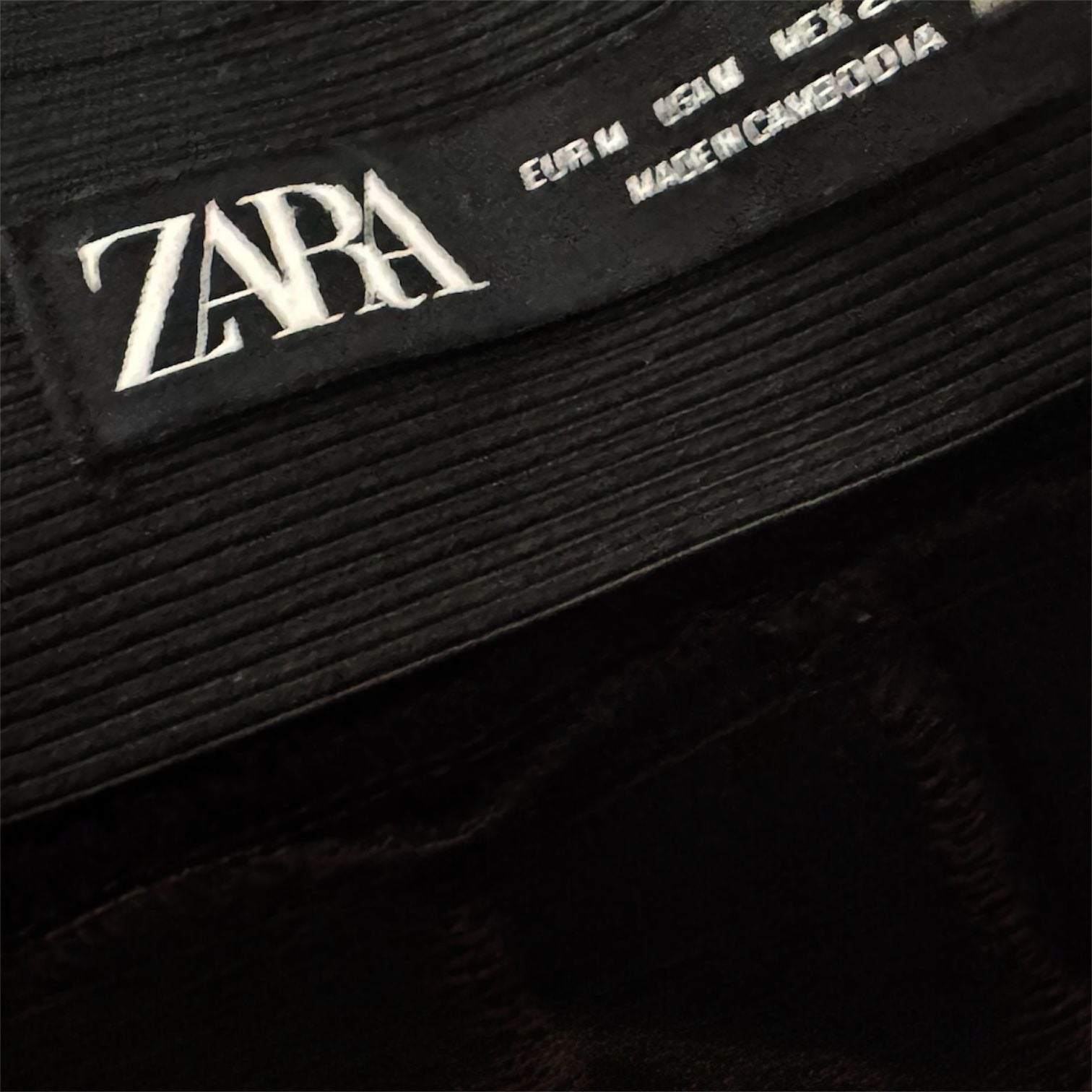 Great black pants by Zara. Slim leg Pull on with an elastic waist. Gold sailor button detail. Tonal seam details. 67% viscose, 29% nylon, 4% elastane. Size medium. Some loose threads. Overall really nice pre-owned and gently worn condition!